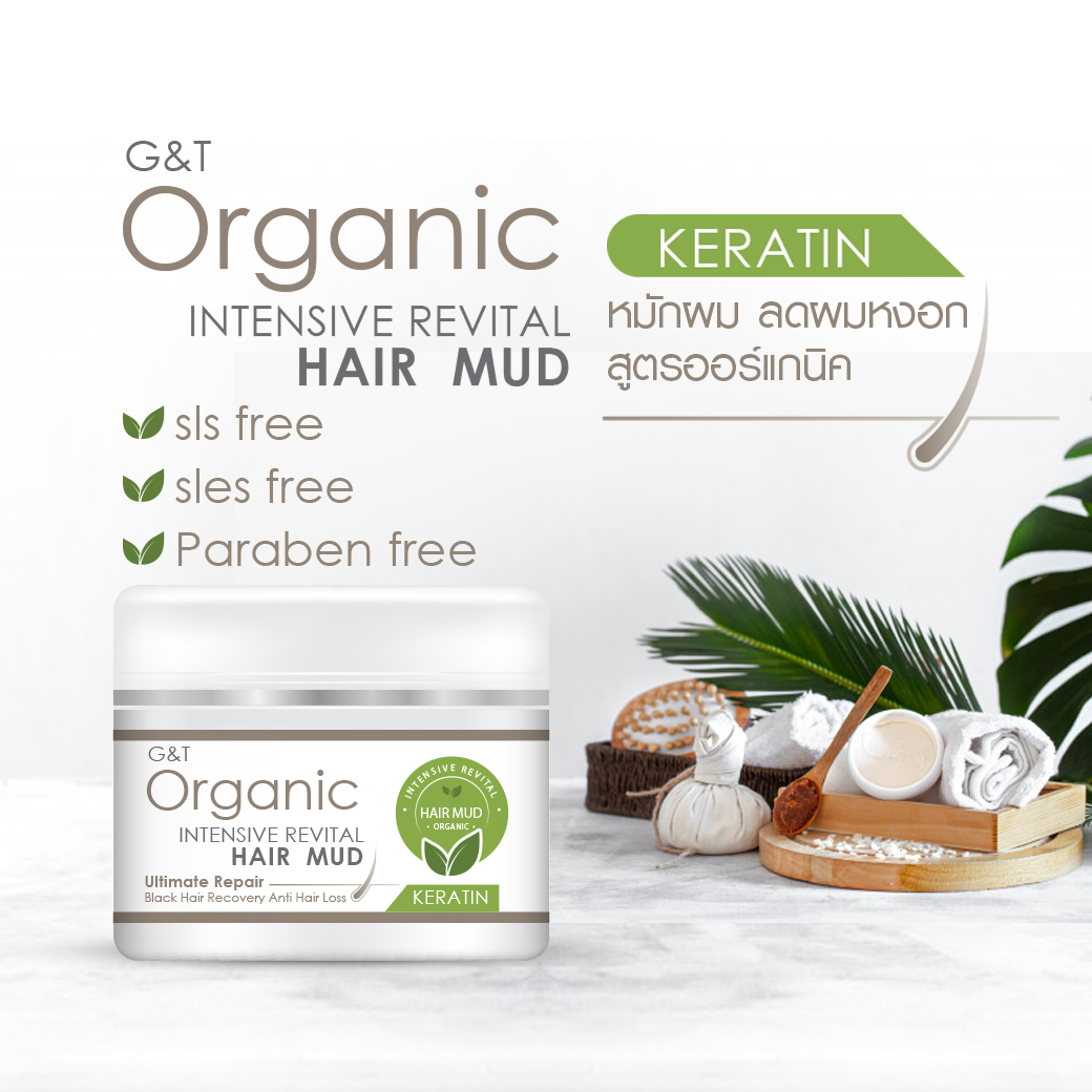 โคลนหมักผมสูตรพิเศษที่ผสานรวมสารสกัดธรรมชาติออร์แกนิค 6 ชนิดกับโปรตีน เคราตินเข้มข้น โดย G&T Organic เราได้คัดสรรสารโปรตีน Keratin ที่มีความคล้ายคลึงกับเคราตินในเส้นผมมนุษย์มากที่สุด สามารถดูดซึมไปใช้ฟื้นบำรุงโครงสร้างเส้นผมให้แข็งแรง ตั้งแต่โคนจรดปลายอย่างมีประสิทธิภาพ อีกทั้งสารสกัดธรรมชาติ เช่น ใบย่านาง ผิวมะกรูด เปลือกแอปเปิลเขียว ดอกอัญชัน โสม และน้ำมันอาร์แกน ยังช่วยบำรุงให้ผมหนาดกดำ เพิ่มเม็ดสีของเส้นผม ทำให้ผมหงอกมีสีเข้มขึ้น ทั้งยังช่วยชะลอการเกิดผมหงอกได้ในระยะยาว ใครที่ได้ใช้โคลนหมักผมสูตรนี้ก็มักแวะมารีวิวกับเราเสมอว่า